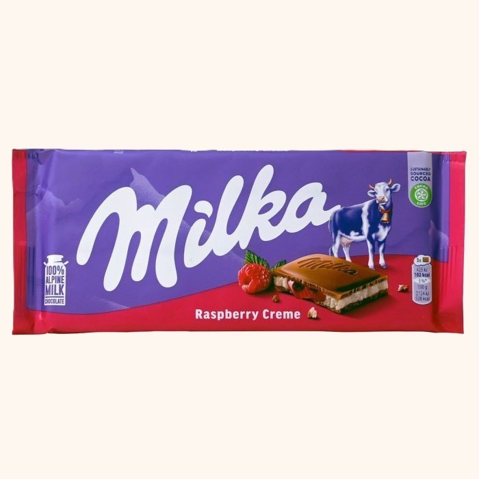 شکلات شیری میلکا مدل خامه تمشک - 100 گرمی