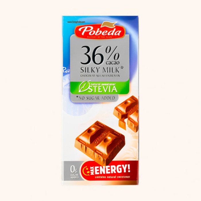 شکلات شیری پوبدا 100 گرمی POBEDA silky milk - شکلات شیری پوبدا حاوی استویا بدون شکر افزودنی