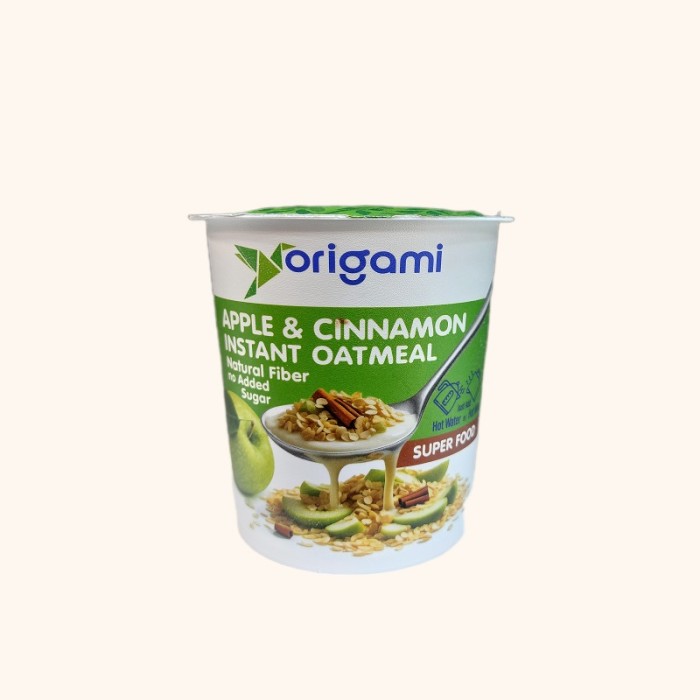 غلات صبحانه 55گرمی ORIGAMI apple & cinnamon - غلات صبحانه لیوانی بدون شکر اضافی با فیبر طبیعی حاوی سیب خشک، پودر خرما و دارچین